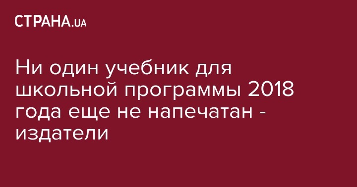 Президент Украинской ассоциации издателей и книгораспространителей Александр Афонин заявил, что на сегодняшний день в Украине ни один школьный учебник из программы 2018 года еще не напечатан, и призывает завершить все процедуры и начать процесс печати не позднее 15-20 июня.