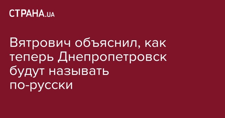 Председатель Украинского института национальной памяти Владимир Вятрович разъяснил русскоязычный вариант написания переименованного депутатами Днепропетровска.