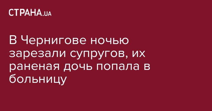 В Чернигове сегодня ночью от ножевых ранений погибли супруги, их 22-летняя дочь попала в больницу также с многочисленными ранениями.
