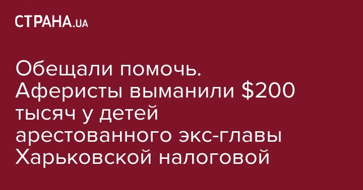 Генеральная прокуратура сообщила о подозрении нескольким злоумышленникам, которые мошенническим путем выманили 200 тысяч долларов у детей арестованного по делу о "налоговых ямах" экс-руководителя Харьковской областной налоговой администрации.