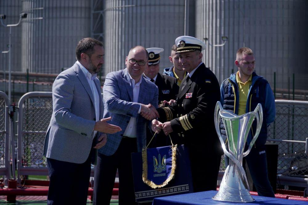 Кубки лиги чемпионов УЕФА презентовали на фрегате "Гетман Сагайдачный"