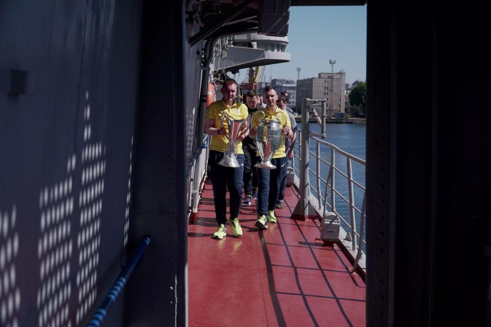 Представителям Военно-морских сил Украины презентовали Кубки Лиги чемпионов УЕФА. Церемония состоялась на фрегате "Гетман Сагайдачный". Об этом сообщает УНН со ссылкой на пресс-службу Одесской ОГА.