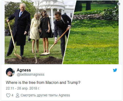 Стало известно, кто выкопал посаженный Трампом и Макроном дуб