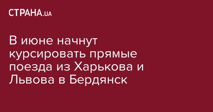 В июне начнут курсировать прямые поезда из Харькова и Львова в Бердянск