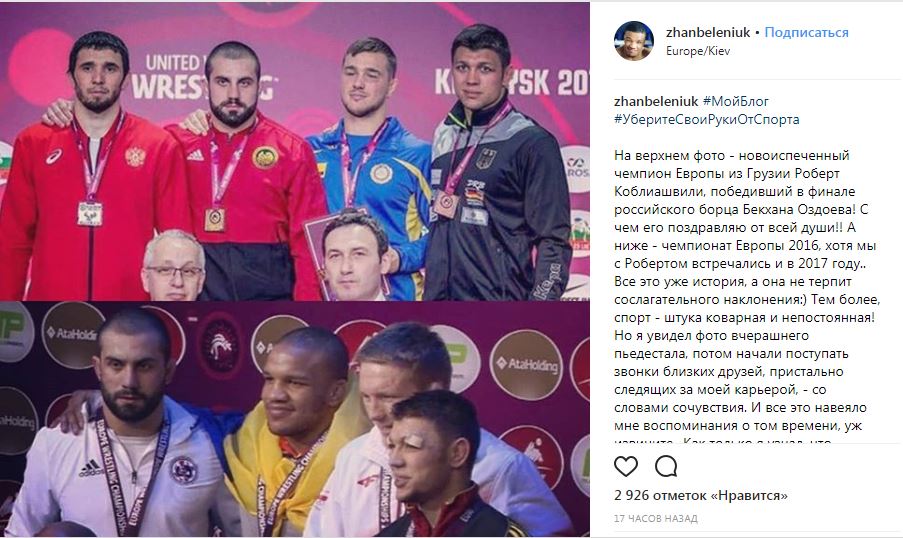 Серебряный призер Олимпийских игр-2016 украинский борец Жан Беленюк недоволен действиями украинских чиновников, создавших препятствия для участия украинских армейских клубов в чемпионате Европы по спортивной борьбе в РФ.