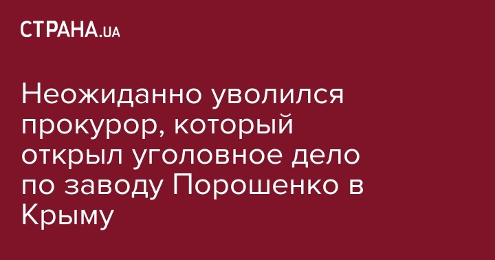 Неожиданно уволился прокурор, который открыл уголовное дело по заводу Порошенко в Крыму
