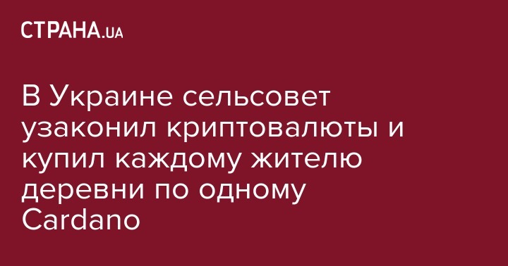 В Украине сельсовет узаконил криптовалюты и купил каждому жителю деревни по одному Cardano