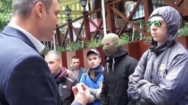 Кличко проезжал по столичным улицам и заметил на тротуаре группу молодых людей, на одежде которых присутствовала символика "Азова", а лица у многих были скрыты масками или платками, покрывающими часть лица. Мэр решил остановится и побеседовать с ними.