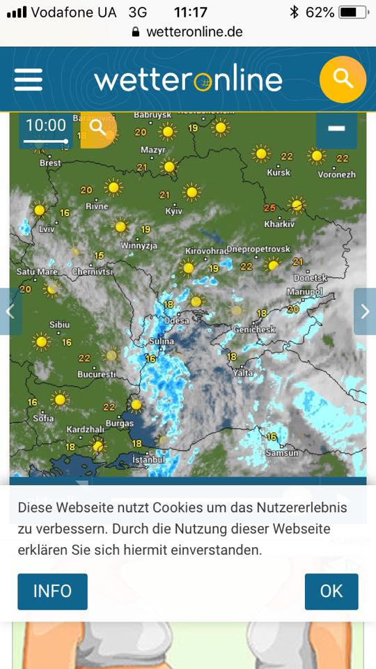 "Сейчас в Украине на севере, в центре, на часть Востока - солнышко, Запад и Юг прикрыты влажными облаками. Интересно, что самый теплый сейчас север, а юг - прохладный. 9 мая существенно погода не изменится. Будет свежим Юг, + 16 + 22, почти жарким Север, до + 26 + 29 градусов. Вообще в Украине в среду + 22 + 26 градусов. Дожди с грозами наиболее вероятные на Юге и Западе. Вечером, возможно, придут на Север и в Центр. На Востоке - без существенных осадков. В Киеве 9 мая очень тепло, до жары, +28, без осадков", - написала она.