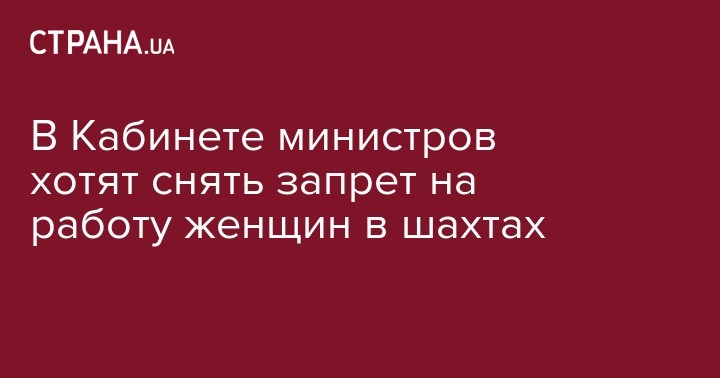 Члены Кабмина предложили Верховной Раде отменить запрет на работу женщин с вредными и тяжёлыми условиями труда и на подземных работах. Соответствующее решение было принято на заседании правительства Украины в четверг, 10 мая.