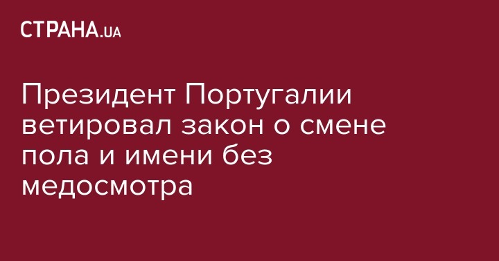 Президент Португалии Марсело Ребело де Соуза наложил вето на законопроект об упрощении смены пола и имени в официальных документах.