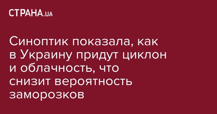 Синоптик показала, как в Украину придут циклон и облачность, что снизит вероятность заморозков