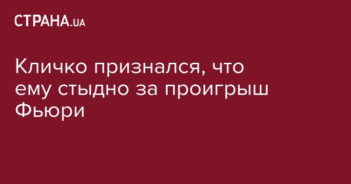 Кличко признался, что ему стыдно за проигрыш Фьюри