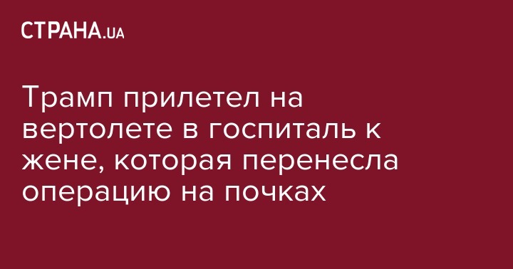 Президент США Дональд Трамп 14 мая навестил в больнице свою супругу Меланию, которая перенесла операцию на почках. Об этом сообщила газета The Washington Post.
