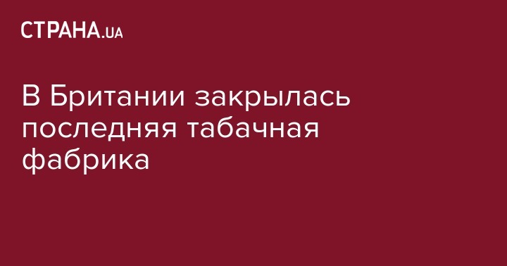 В Великобритании, в графстве Ноттингем, закрылась последняя в стране табачная фабрика. Компания Imperial Tobacco, которая владела этим предприятием, вероятно, сфокусируется на восточноевропейских и азиатских рынках, говорят эксперты, передает ВВС.