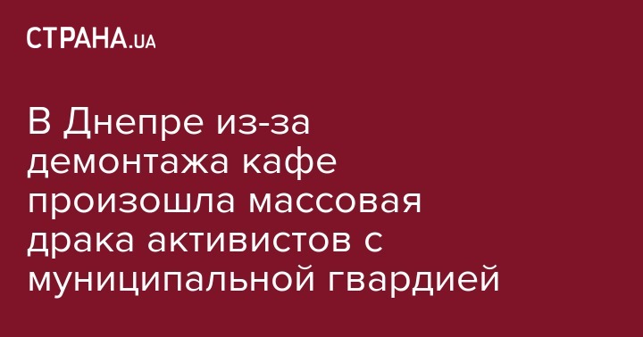 В Днепре из-за демонтажа кафе произошла массовая драка между бойцами муниципальной гвардии (негосударственная охранная структура) и активистами-противниками сноса. Инцидент произошел вечером 15 мая на Сичеславской набережной. Об этом сообщает "Информатор".