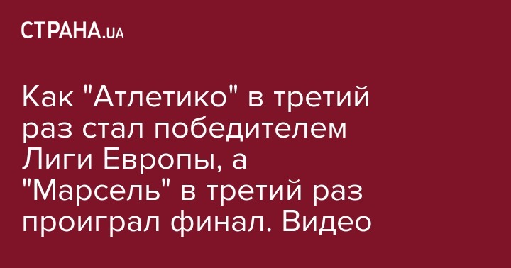 Мадридский "Атлетико" в третий раз стал победителем Лиги Европы УЕФА. В финале, который в среду был сыгран в Лионе, испанский клуб со счетом 3:0 обыграл французский "Марсель".