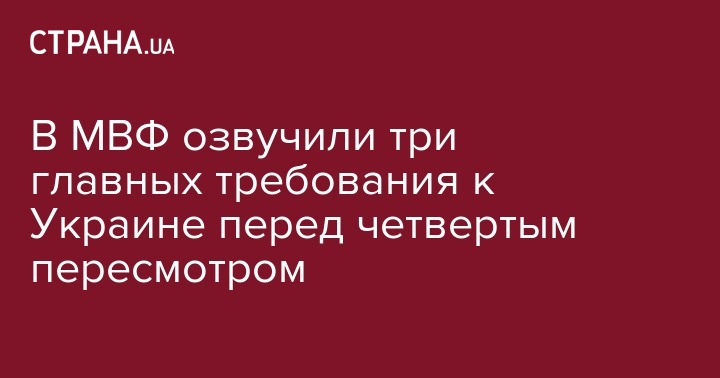 МВФ ждет достижение Украиной прогресса по трем конкретным направлениям для завершения четвертого пересмотра по программе расширенного кредитования и принятия решения о следующем транше.