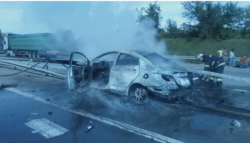На Одесской трассе в Николаевской области автомобиль загорелся после ДТП.