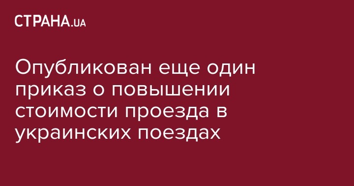 Документом также повышается стоимость перевозки грузобагажа в специальных вагонах и устанавливается в размере 5,62 грн (сейчас 2,81 грн) за 1 вагоно-километр независимо от загрузки вагона. Стоимость перевозки вагонов пассажирского парка, независимо от формы собственности, в пустом состоянии устанавливается в размере 5,48 грн (сейчас 2,49 грн) за 1 вагоно-километр.
