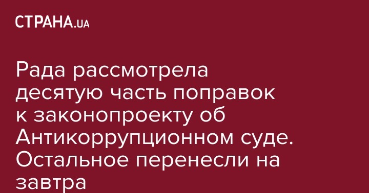 Верховная Рада в среду рассмотрела более двух сотен из почти 2000 поправок к законопроекту о Высшем антикоррупционном суде. На утреннем пленарном заседании парламента в среду депутаты рассмотрели 235 поправок, после чего заседание закрыли, передает "Интерфакс-Украина".