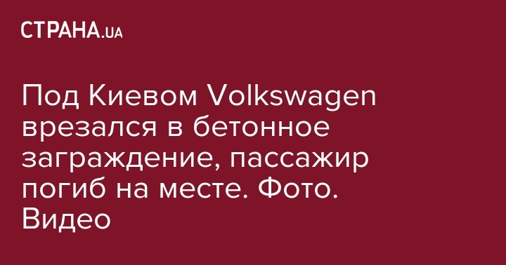 Под Киевом Volkswagen врезался в бетонное заграждение, пассажир погиб на месте. Фото. Видео