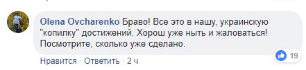 В комментариях люди тоже радуются достижению. Один из комментаторов пишет: "Все это в нашу, украинскую "копилку" достижений. Хорош уже ныть и жаловаться! Посмотрите, сколько уже сделано".