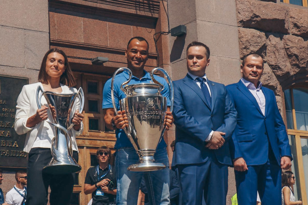В четверг, 24 мая, на Крещатик прибыли два кубка Лиги Чемпионов, мэр Киева открыл фан-зоу ЛЧ-2018.