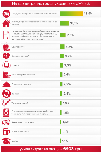 Абсолютное большинство расходов украинцев (более 70%) уходит на покупку еды и оплату коммунальных услуг. А это означает, что во всем остальном приходится существенно себе отказывать.