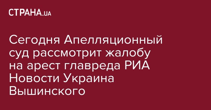 "Апелляционным судом Херсонской области 29 мая в 15:45 будет рассматриваться уголовное производство по апелляционной жалобе защитников в интересах подозреваемого в совершении государственной измены (ч. 1 ст. 111 УК Украины) Кирилла Вышинского, руководителя "РИА Новости-Украина", на решение следственного судьи Херсонского городского суда Херсонской области от 17 мая об избрании в отношении подозреваемого меры пресечения в виде содержания под стражей", - говорится в сообщении.