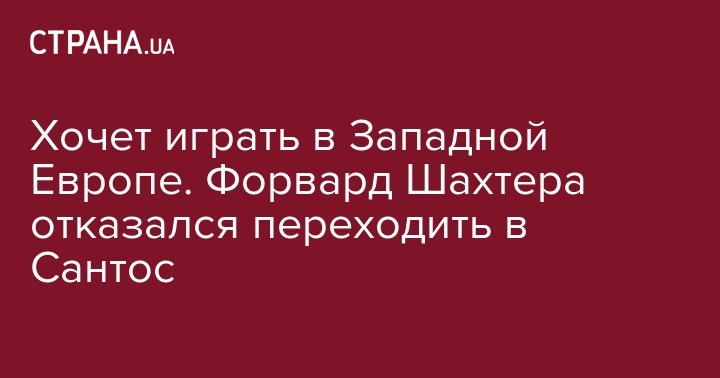 Хочет играть в Западной Европе. Форвард Шахтера отказался переходить в Сантос