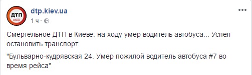В Киеве во время движения автобуса, который ходит по маршруту №7 (Железнодорожный вокзал "Центральный" – Львовская площадь), умер пожилой водитель.