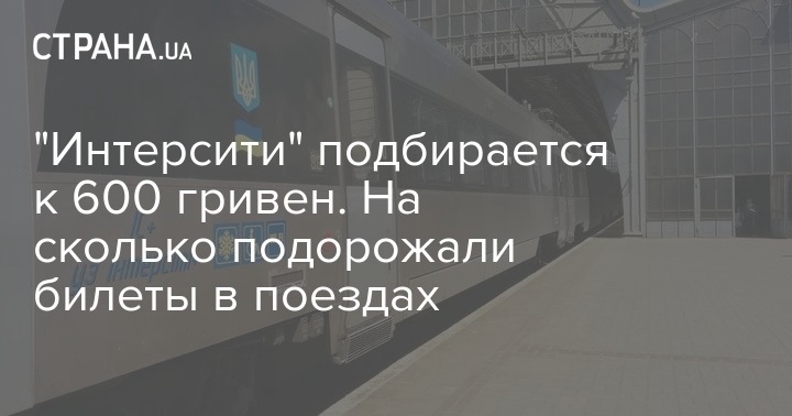 Интерсити стоит 538,19 грн за билет в вагоне первого класса и 348,59 - второго. По старым ценам это 473,60 и 306,75 грн.