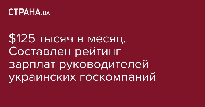 $125 тысяч в месяц. Составлен рейтинг зарплат руководителей украинских госкомпаний