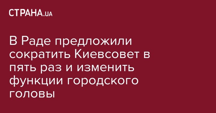 В Верховной Раде зарегистрирован проект новой редакции закона о столице, в котором предлагается уменьшить количество депутатов Киевсовети со 120 до 25 и увеличить полномочия мэра.