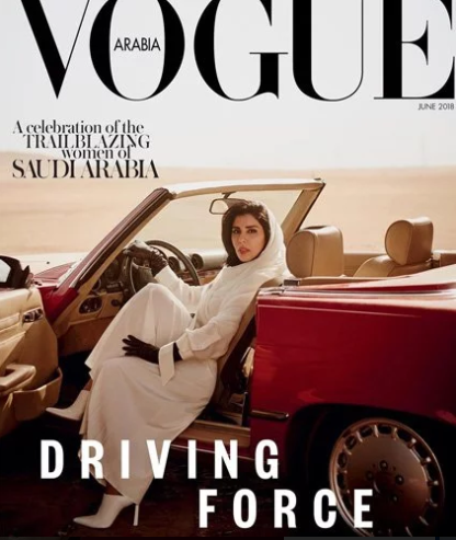 Фото принцессы Саудовской Аравии, которая позирует за рулем авто появилось на обложке июньского журнал Vogue Arabia. Об этом сообщает Arab News.