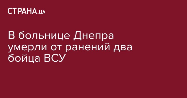 Двое военнослужащих, получившие ранения на Донбассе, умерли в Днепровской областной больнице имени Мечникова.