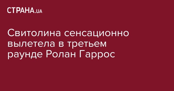 Свитолина сенсационно вылетела в третьем раунде Ролан Гаррос, она уступила 33-й ракетке мира, не повторив прошлогоднего результата, когда она дошла до четвертьфинала, передает Спортарена.