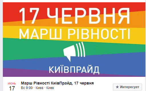 "17 июня 2018 года в рамках КиевПрайд-2018 состоится ежегодный Марш Равенства", - сказано в сообщении организации КиевПрайд