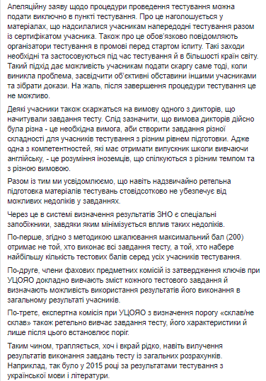 В УЦОКО ответили на жалобы сдававших ВНО по английскому языку