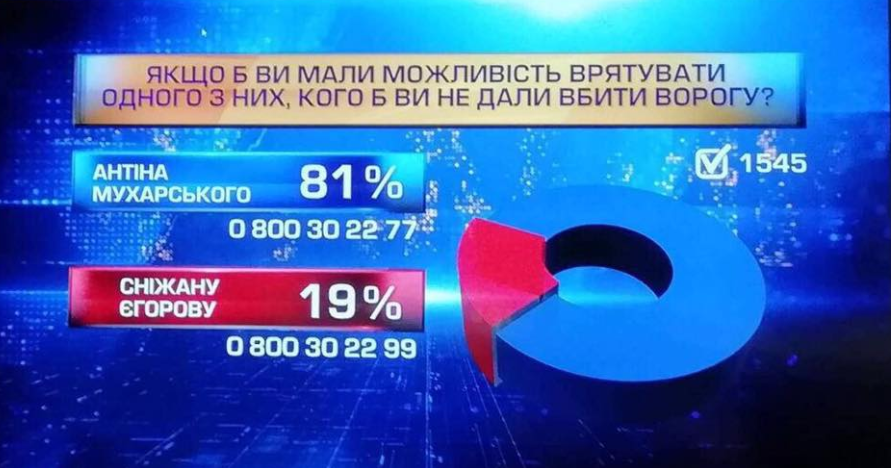 Судя по скриншоту, который обнародовала ведущая, большинство зрителей поддержали Мухарского.