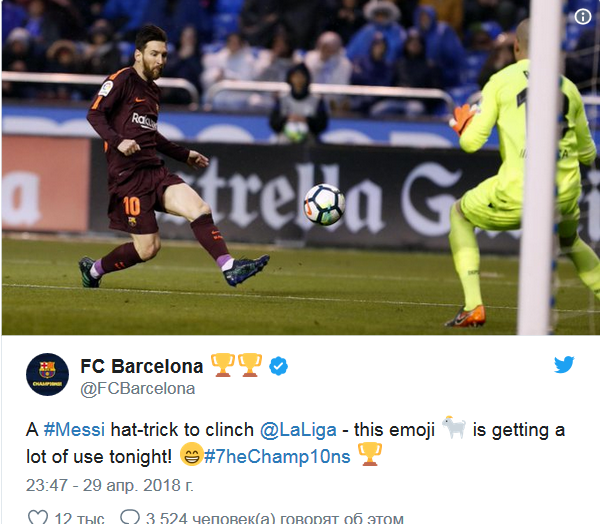"Месси сделал хетт-трик - этот эмодзи Козла будет очень популярен этой ночью", - написали в аккаунте Барсы. Недоброжелатели великого футболиста тут же подхватили это, и начали называть Месси в соцсетях не иначе как козлом.