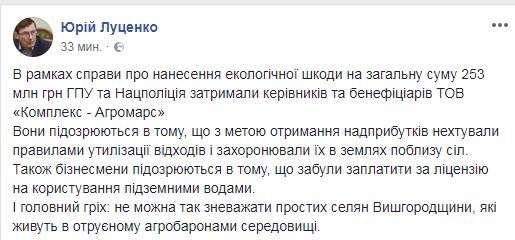 Луценко подтвердил задержание руководителей "Гавриловских курчат" из-за скотомогильника под Киевом