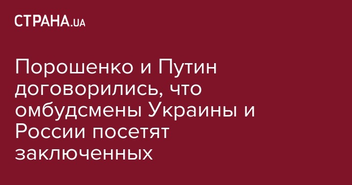 Порошенко и Путин договорились о посещении омбудсменами Украины и России содержащихся в заключении граждан.