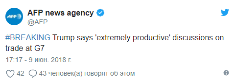 После этого лидер Белого дома вылетел из Канады в Сингапур на саммит с лидером КНДР Ким Чен Ыном, пишет "РИА Новости".
