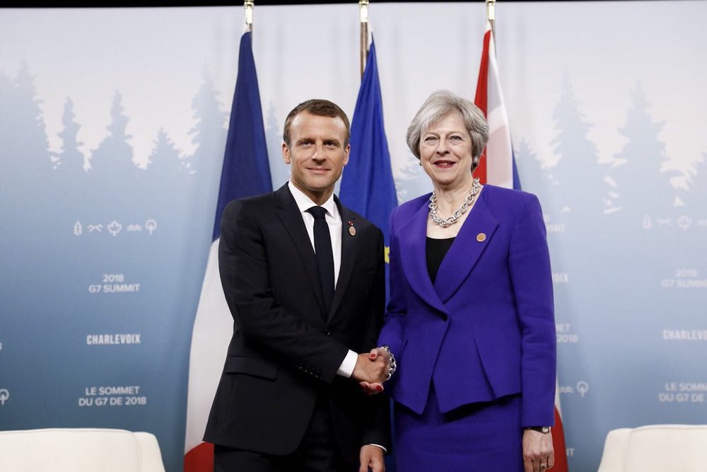 Сравните это с позированиями французского президента с другими лидерами – премьером Италии Джузеппе Конте и Британии – Терезы Мэй. Они прямо брызжут яркими красками и позитивом.