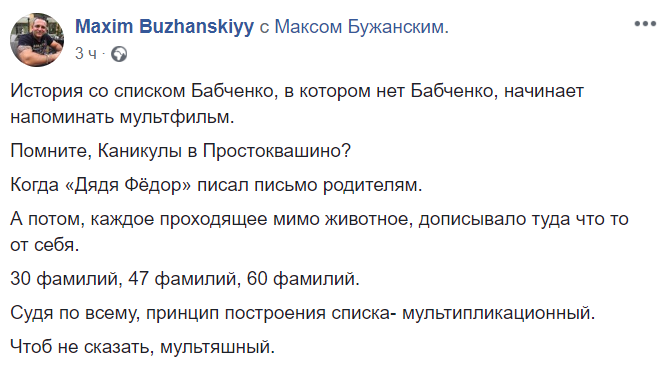 "История со списком Бабченко, в котором нет Бабченко, начинает напоминать мультфильм.