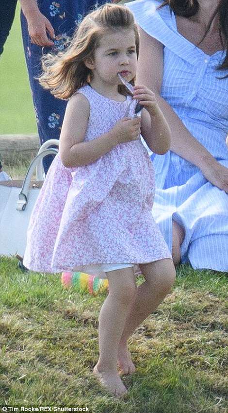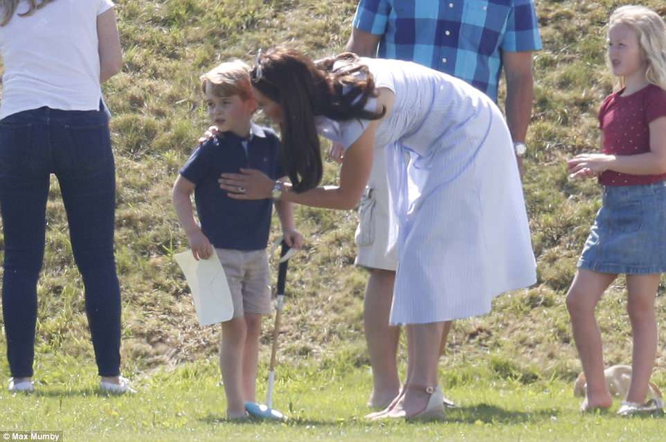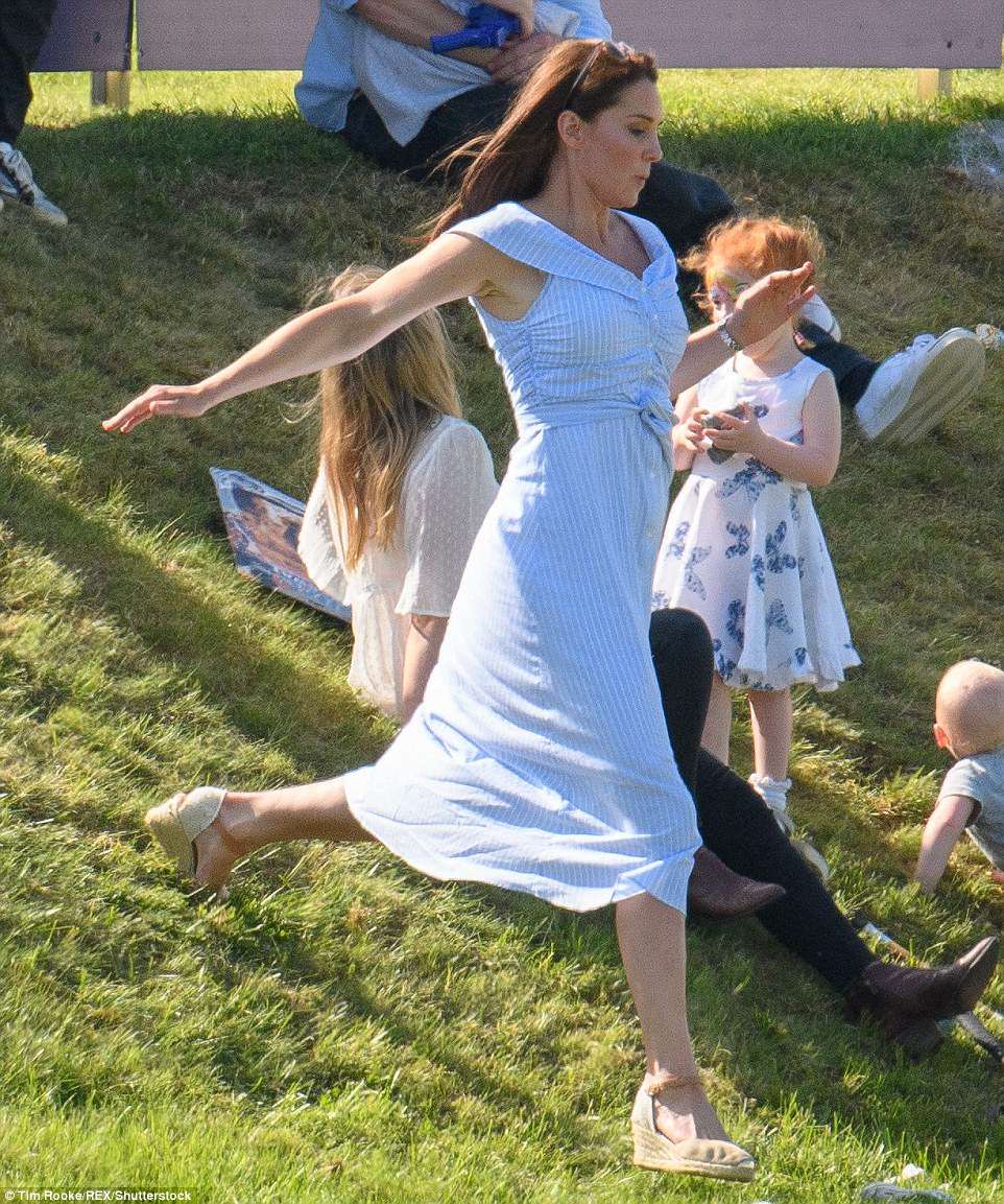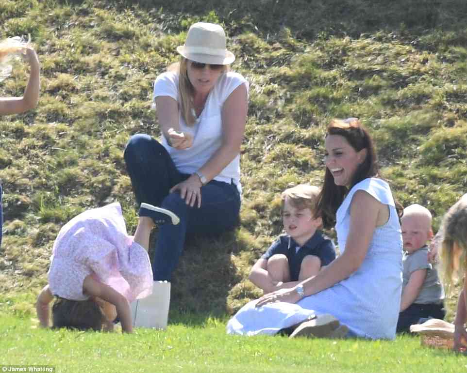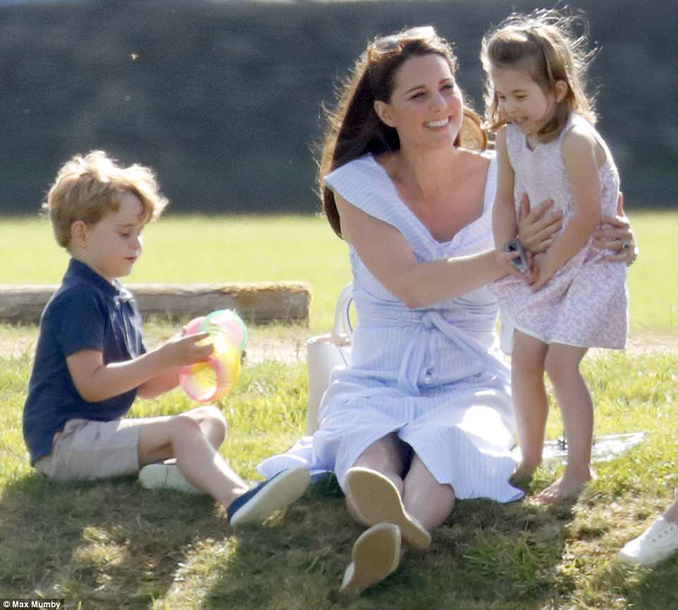 В то время как герцог Кембриджский принимал участие в игре, Кейт с детьми развлекалась на газоне и поддерживала своего мужа.