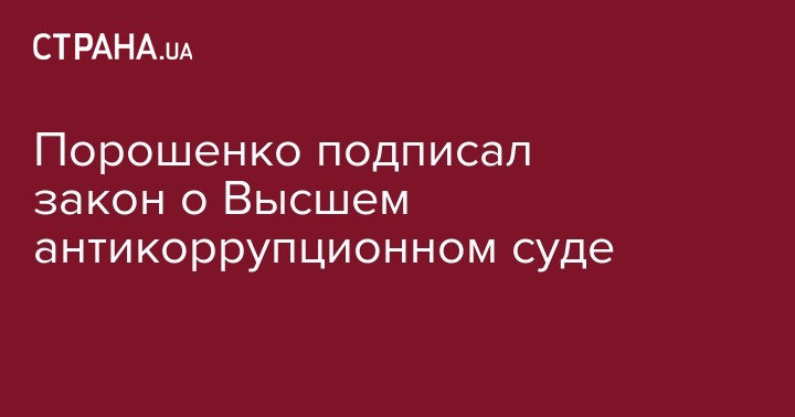 Президент Украины Петр Порошенко подписал закон о Высшем антикоррупционном суде. Об этом глава государства написал в своем микроблоге в соцсети.