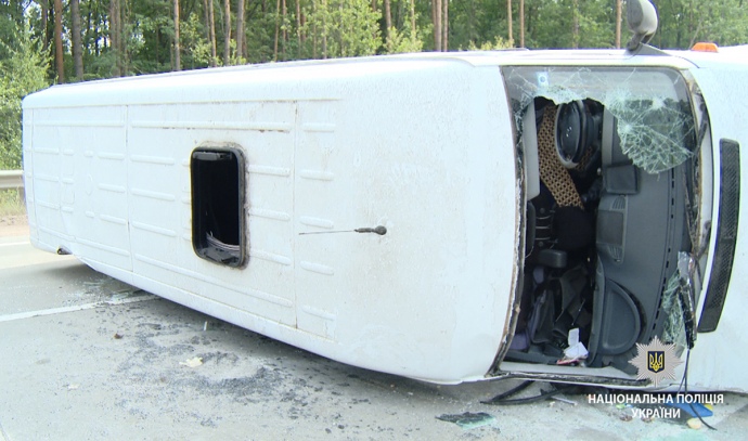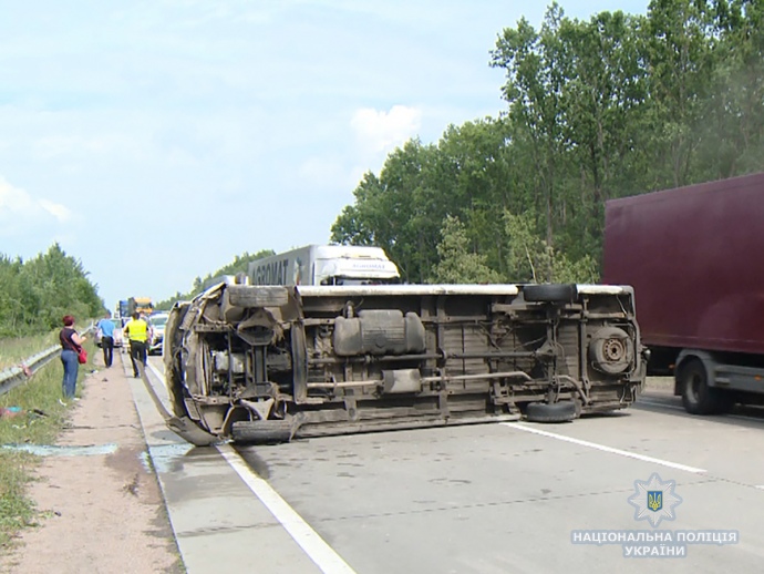 Под Житомиром автобус лег на бок и перегородил трассу Киев-Чоп
